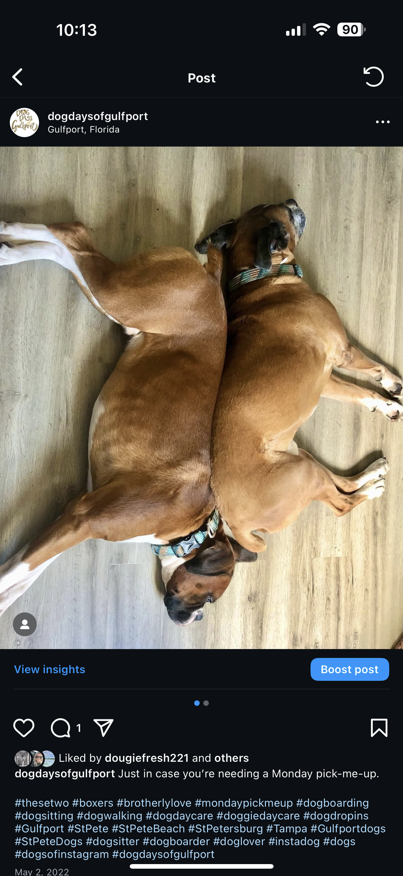 Dog Days of Gulfport is THE best pet sitting option in Florida! Janine and Doug are responsive, friendly, and care for all the pups better than any sitter I've used. Blue loved his visit at DDOG and we will definitely be back for another week long stay soon. Highly recommend!